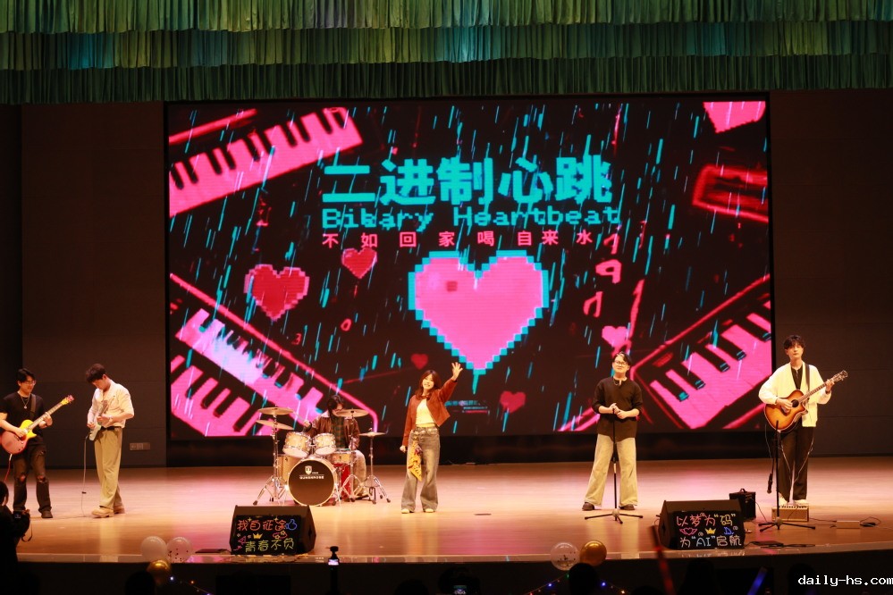 经过初赛与复赛的激烈角逐,12组优秀选手脱颖而出,成功晋级决赛。歌会以一首精心编排的经典影视剧金曲串烧拉开帷幕,瞬间点燃全场热情。比赛中,选手们依次登台献唱,以饱满的热情和精湛的演唱技巧赢得现场观众阵阵掌声。本次大赛以“人工智能+艺术”为创新切入点,深度融合专业特色与美育实践。选手们将AI技术深度融入表演,通过人工智能技术优化舞台音效、设计视觉特效,为观众带来耳目一新的科技感视听体验。